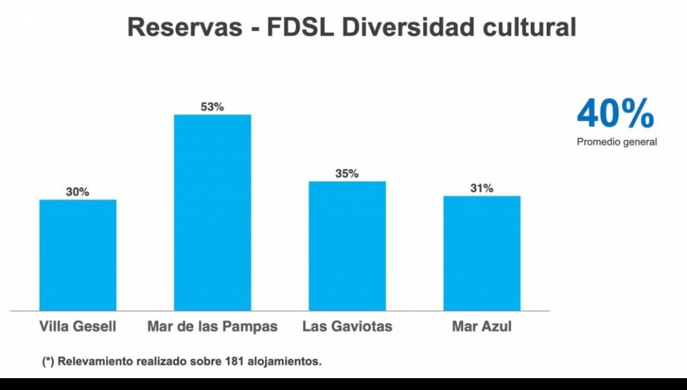 De acuerdo al relevamiento, y siendo lunes 6 de octubre, Villa Gesell registra un 30% de reservas, Mar de las Pampas un 53%, Las Gaviotas un 35% y Mar Azul un 31%, alcanzando así un promedio general del 40% entre todas las localidades.